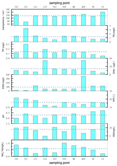 | Sampling Points | Transparency | TN | TP | Chla | COD | WT | pH | DO | -N |