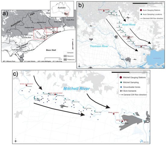 - Hofmann, H.; Cartwright, I. Using hydrogeochemistry to understand inter-aquifer mixing in the on-shore part of the Gippsland Basin, southeast Australia. Appl. Geochem. 2013, 33, 84–103. [Google Scholar] [CrossRef]