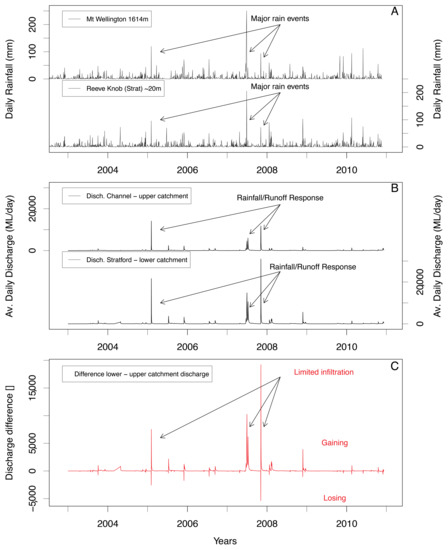 5.2. Baseflow in the Avon and the Mitchell River and the Implications for Water Resources