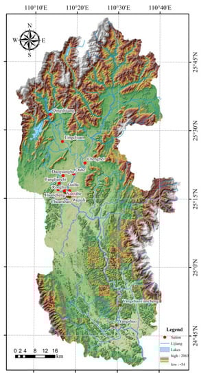 - Wang, H.; Yan, W.; Wang, J.; Duan, W. Exploring Distribution Rules and Variation Trends of Precipitation in the Upper Lijiang River from 1951 to 2016, Guangxi Province, China. J. Coast. Res. 2020, 105, 1–5. [Google Scholar] [CrossRef]