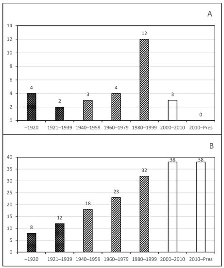 3.1. Phase 1: Early Studies Dominated by Foreign Researchers (Second Half of XIX Century to 1940s of XX Century)