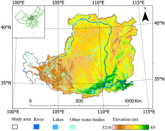 The Loess Plateau is located in the north-central part of China, with a total area of about 640,000 km2. It is the largest loess sedimentary region in the world (Figure 1). The strong water erosion on the Loess Plateau not only reduces the fertility of the land but also leads to a continuous uplift of the riverbed and threat of the river to both sides of the downstream. The Yellow River is the main water system on the Loess Plateau region; the river has a high sand content. Due to the special hydrometeorological conditions and underlying surface conditions of the Loess Plateau, people have built a large number of check dams, small and medium-sized reservoirs, and cisterns. These reservoirs reduce the amount of sediment flowing into the river. There are a large number of small water bodies on the Loess Plateau, whose distribution is closely related to rainfall, topography and population distribution. The study of small water bodies on the Loess Plateau is of great significance for reducing soil erosion, increasing crop yields and improving the living environment.