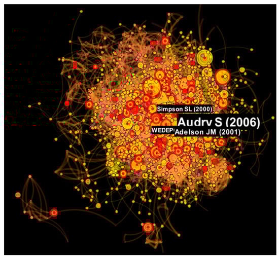 Briefly, scientometrics refers to the analysis of the available scientific literature using various visualizations and comprehensive text. Scientometrics is a quantitative analysis of the available literature, with a focus on study patterns, using systematic, continuous and comprehensive methods []. These methods help us to quantify the impacts of academia and publications in terms of the published literature, the types of publication sources (e.g., journals), institutional hot spots and the countries that are involved in the selected thematic issues or subject areas. Data for scientometric assessments are available from Web of Science, Scopus, Google Scholar, Microsoft Academic, PubMed and Dimensions. CiteSpace, BiblioMaps and VOSviewer are a few of the tools (i.e., software) that can be used to analyze text-mining activities [,]. Nodes, centrality, citation bursts, cluster analysis, modularity and silhouette scores are some of the key terms used in such software. Essentially, a node is a structure from which “leaves” and “buds” emerge, as well as “branches.” Nodes in scientometrics usually refer to the connections between various elements of the analysis, such as the authors, countries or available references []. The nodes in most scientometrics analysis software are critical for the basic foundations of the chosen research field []. In most cases, centrality refers to “turning points” in the selected issue, which are usually represented by different colors based on the software used and the significance of the nodes in the literature. Modularity and silhouette scores are linked to each other, with the latter being referred to as indicators of the overall structure of the research [].