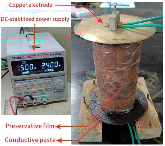 where is the potential difference between the two sides of the specimen; is the current flowing through the specimen; is the sectional area of the specimen and is the length of the specimen. As illustrated Figure 2, conductive paste was painted onto the inner surface of the copper electrode to guarantee measurement accuracy.