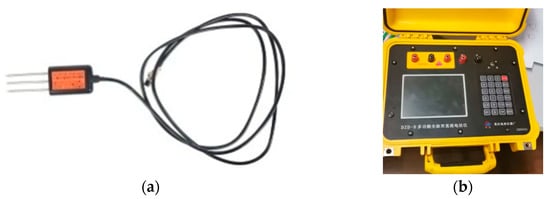Monitoring instrument: (a) LD-EC soil moisture sensor, (b) DZD-8 multifunctional full-waveform DC electrostatic instrument.