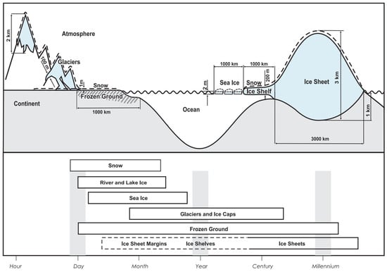 Components of the cryosphere and their time scales (modified from Ref. [1]).