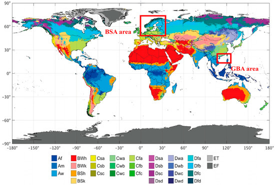 New and improved present-day Köppen–Geiger classification map (1980–2016) and areas we selected (GBA and BSA) (Beck 2020).
