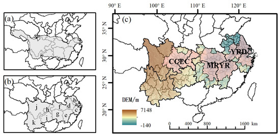 - Yang, Z. Comparison and empirical analysis of the urban economic development level in the Yangtze River urban agglomeration based on an analogical ecosystem perspective. Ecol. Inform. 2021, 64, 101321. [Google Scholar] [CrossRef]