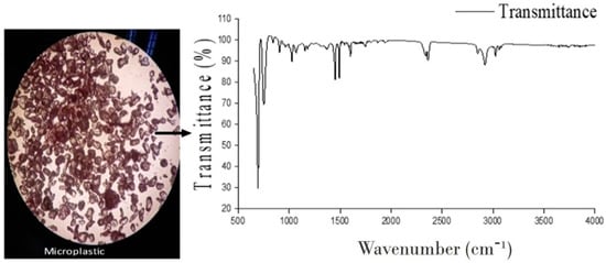 Characterization of the polymeric material of the MPs was carried out by Fourier Transform Infrared Spectroscopy (FTIR), a standard analytical technique used to identify unknown polymer types. MP samples produced a resultant spectrum in the Far-IR range of 689/cm to 4000/cm, at a resolution of 0.7/cm using a JASCO FT/IR-4600 FT-IR spectrometer. The type of polymer was identified by matching the obtained spectra against the inbuilt library database (Sadtler database NDUPP-X).