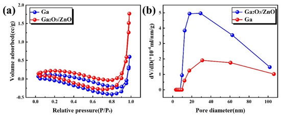 N2 adsorption–desorption isotherms (a) and pore size distribution of Ga2O3/ZnO (b).