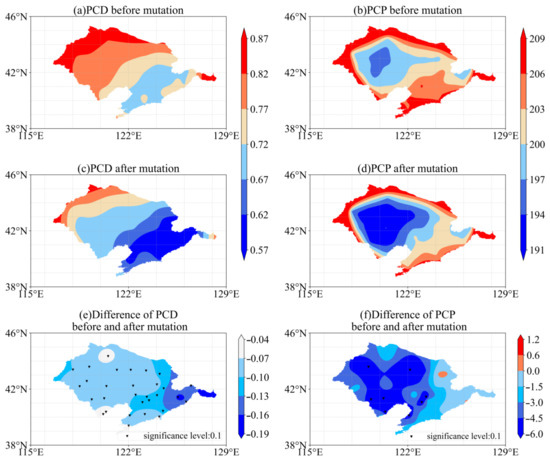 The spatial interpolation method was used to obtain the regional distribution maps of the PCD and the PCP, and the differences before and after the mutation point are compared (Figure 3).