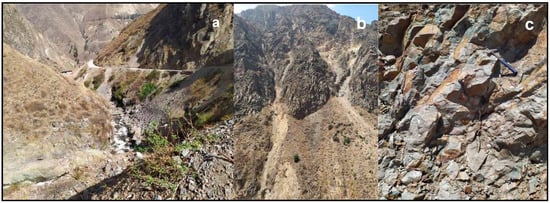 Figure 3 shows the alluvial and colluvial material of Parac creek (a and b) and Hipoabisal andesite (c). The rains are abundant with an average annual rainfall of 500 mm, with a seasonal regime of the Peruvian Pacific vertient. The wet season begins in December and ends in March and the dry season begins in June and ends in the middle of August, the rest being transitional. With respect to temperature, it varies throughout the year and according to altitude. In the lower part, an annual average of 10 °C is reached, in summer it reaches 19 °C, and in winter up to 5 °C. In the valley, the temperature is not a limitation for agricultural activities. In the high areas, the presence of meteorological frosts only allows for the development of natural pastures.