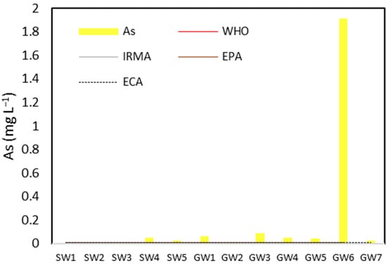 Numerous surveys abound in the literature on heavy metal pollution of water sources. Such work includes [15,16,17]. All these workers concluded that there was a need to monitor water quality on a regular basis. The authors of [18] investigated trace element distributions and concentrations, specifically As. Their results showed that contamination reaches very high concentrations, and the impacts may be crucial for humans and ecosystems. We marked that some factors such as physicochemical properties, regional climate, and geological settings are controlling the occurrence and transport of As. In addition, [19] mentioned that the necessity of monitoring water quality has recently caused some to conclude that developing and applying index methods for water quality assessments regarding metal pollution are vital.