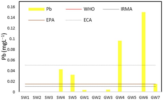 Lead concentrations in surface water (SW) and groundwater (GW) were obtained within the samples that were examined.