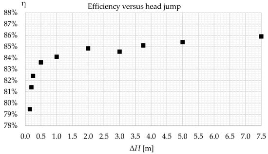 Efficiencies versus head jumps solved using 2D CFD analysis.