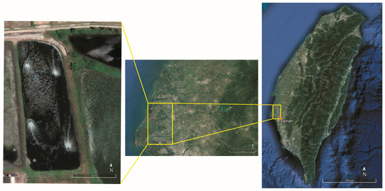 Geographical location of the studied fish farm in Qigu, Tainan, (Google Earth Pro 7.3.3.7786 (2021)).