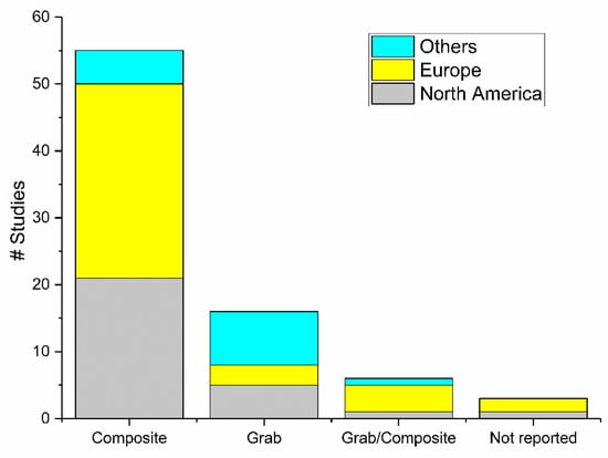 - Kmush, B.L.; Monk, D.; Green, H.; Sachs, D.A.; Zeng, T.; Larsen, D.A. Comparability of 24-Hour Composite and Grab Samples for Detection of SARS-2-CoV RNA in Wastewater. FEMS Microbes 2022, 3, xtac017. [Google Scholar] [CrossRef]