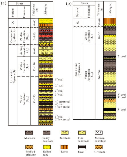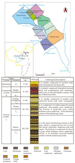 - Jiao, Y.Q.; Wang, S.M.; Fan, L.M.; Wu, L.Q.; Rong, H.; Zhang, F. Key elements and framework model of groundwater system in Jurassic coal measures of Ordos Basin. J. China Coal Soc. 2020, 45, 2411–2422, (In Chinese with English Abstract). [Google Scholar]