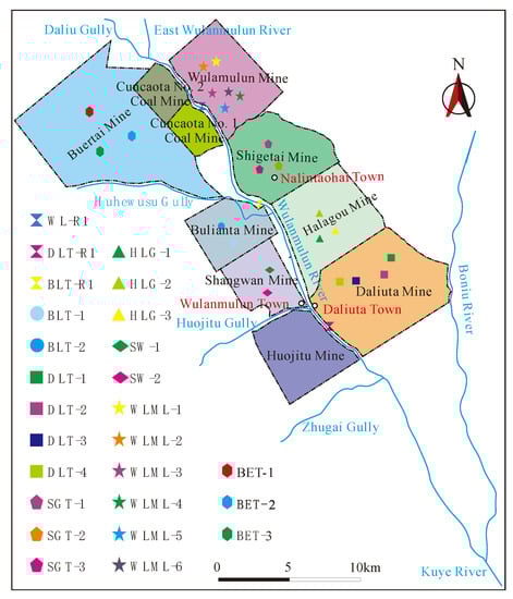 - Liu, F. Study on hydrogeochemical test of groundwater resources in Shendong Mining Area. Coal Eng. 2009, 41, 100–102, (In Chinese with English Abstract). [Google Scholar]