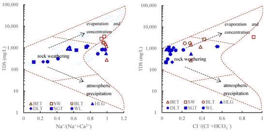 - Gibbs, R.J. Mechanisms Controlling World Water Chemistry. Science 1970, 170, 1088–1090. [Google Scholar] [CrossRef]