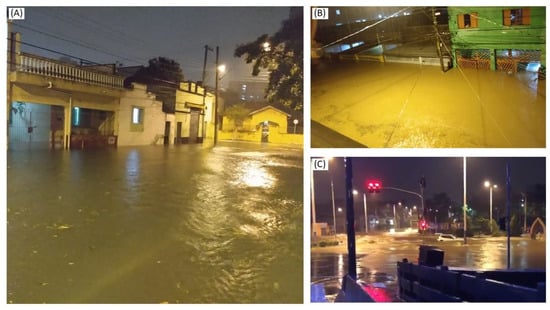 Some photos of the floods on 10 March 2019 in São Caetano do Sul. Source: (A,B) []; (C) [].