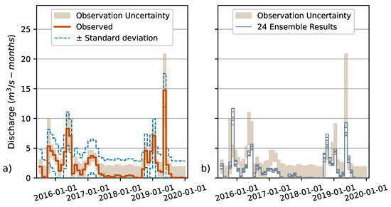 Figure 7. This discharge observation error model is the standard deviation of the observed monthly discharge time series added to and subtracted from the monthly averaged observed discharge. In this case, a constant standard deviation value is used for all