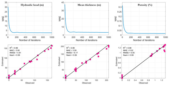 The results obtained following the geostatistical analysis (see Section 3.1) in the methodology) are summarized here. Several variogram models were tested, and the best variogram was chosen for each geological formation. Table 3 shows the metrics related to the best variograms selected for each geological formation.