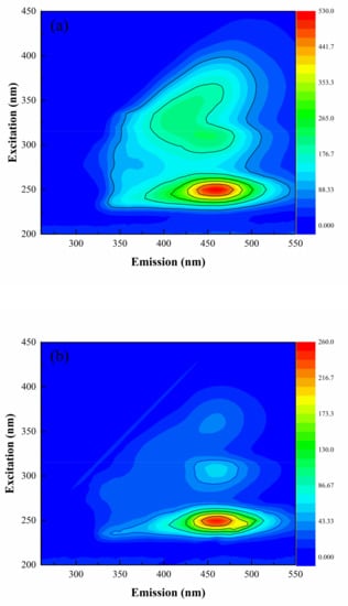 - Wen, C.; Paul, W.; Leenheer, J.A.; Karl, B. Fluorescence excitation-emission matrix regional integration to quantify spectra for dissolved organic matter. Environ. Sci. Technol. 2003, 37, 5701–5710. [Google Scholar]