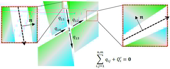 Take a simplified example of a fracture network as shown in Figure 7. Assuming to be the element nodal 1 discharge, the total flow discharge of inflow or outflow at node 1 can be written as: