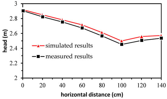 Comparison of the hydraulic heads between the coupled model and experimental results in [49].