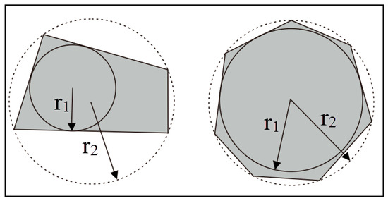 where is the angle corresponding to the modified rear edge length. After determining the corresponding angle of each side of the polygon and 2π, the vertex coordinates of the polygon were determined according to the polar coordinates, as shown in Formulas (3) and (4):