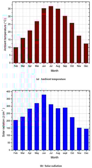 The solar radiation data utilized in this study wereobtained with high accuracy from a radiometric station located on the roof of the applied research unit for renewable energies (URAER) building in Ghardaia. The data was collected over a period of 335 days, from 9 February to 31 December 2012, and is depicted in Figure 3. The results show that the highest temperature was recorded in July with a temperature of 43 °C, while the lowest value of 11 °C was recorded in the month ofJanuary. As a resultof this study, the month of July is considered the most suitable time for the study.