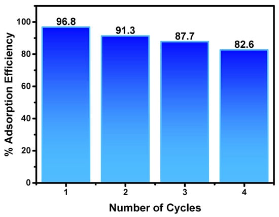 Chemical precipitation, ion exchange, reverse osmosis, nanofiltration, and adsorption are some of the heavy metal removal processes that are commonly used []. Most of these approaches are not suited for small-scale companies due to their large capital expenditures. The adsorption process is the most effective method of eliminating ecologically harmful and hazardous organic–inorganic compounds from the environment [,,]. Further, the development of cost-effective adsorbents for heavy metal removal from wastewater relies on the fabrication of nanostructured materials with enhanced properties—primarily high surface area—that play an essential role in the adsorption process. Numerous studies have focused particularly on metal oxides and composites based on metal oxides to remove heavy metals from aqueous solutions [,,,].