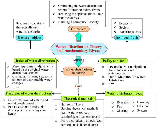 A description of the main content (excluding the specific details) of the cross-border river water distribution theory is presented in Figure 1. Due to different analysis angles, there may be a specific crossover and causality.