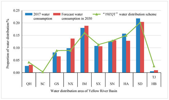 To facilitate the comparison with the Yellow River 1987 distribution scheme, the new Yellow River distribution scheme obtained in this section is called the “19ZQT” distribution scheme. This scheme is based on the Yellow River water distribution and systematic water distribution factors from a macro perspective, hence it can be viewed as a reference.