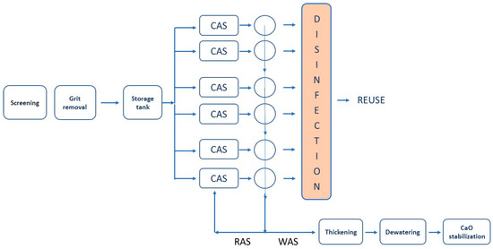 - The concentration of dissolved oxygen (DO) into the aerobic tanks of the CAS section was assumed equal to 2 mg/L;