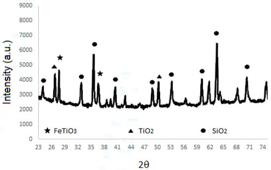 Natural mineral composites are known to present photoreactive and reactive compounds such as titanium dioxide and ferrous oxide in their structure; among those minerals, magnetite, limonite, ilmenite, and hematite, could be found, among others [], which in some cases are raw materials to obtain products of higher purity. According to Tang et al. [], among those mineral composites, ilmenite has a potential worth studying since it can be used in composite materials for the photocatalytic destruction of organic contaminants.