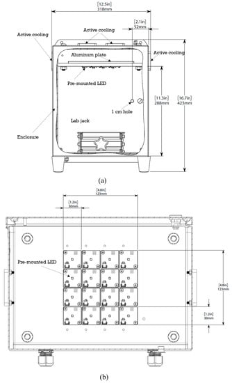 Schematics of LED photoreactor: (a) front view; (b) top view.