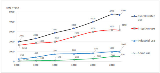 FAO (Food and Agriculture Organization of the United Nations) released the global overview report on agricultural water resources (FAO, 2020/11/26) [1], which pointed out that agricultural water accounts for more than 70%. Figure 1 shows the global distribution of water use from 1961 to 2014, in which irrigation water use has increased year by year, ranking first among all types of water use.