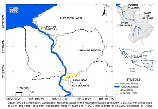 To conduct the survey, we selected the two most representative localities within the Los Horcones River watershed: Boca de Tomatlán (with a population of 585) and Las Juntas y Los Veranos (with a population of 537). These rural localities make up 95.24% of the total population in the watershed and were the primary focus of our study.