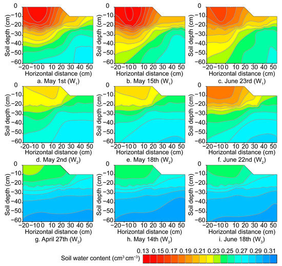 3.4. Two-Dimensional Distribution of Soil Water Content