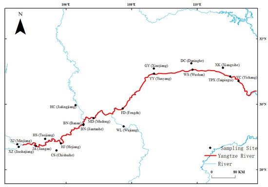 Sampling locations in the upper part of the Yangtze River.