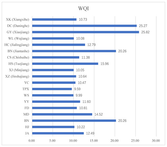 The water quality index (WQI) is a ratio that reflects the comprehensive impact of different water quality variables and is considered to be a powerful tool that can comprehensively reflect the water quality of rivers [13].