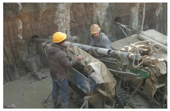 In this foundation pit project, the combination of prestressed anchor cable and supporting pile produces a more effective supporting effect for the foundation pit project. In this foundation pit project, the anchor cable adopts a 15.2 mm diameter steel strand, and the hole diameter is 150 mm. When applying to prestress to the anchor cable, it is necessary to wait for the strength of the grouting consolidation body of the anchor section to reach 20 MPa or reach more than 80% of the design strength and for the supporting pile gets more than 80% of the design strength, and the anchor cable can be tensioned and locked, and the five-stage tension is carried out according to the locking value, and the specific construction process is shown in Figure 3.
