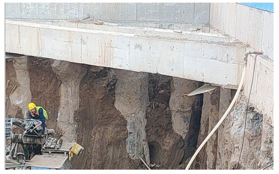 - Castaldo, P.; Calvello, M.; Palazzo, B. Structural safety of existing buildings near deep excavations. Int. J. Struct. Eng. 2014, 5, 163–187. [Google Scholar] [CrossRef]