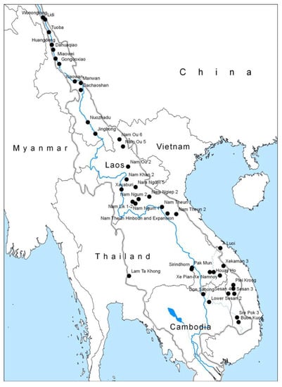 In the meantime, in Cambodia, the highly controversial 400 MW-capacity Lower Sesan 2 Dam [,], the largest dam built in Cambodia to date, began construction in 2014 and was operational by 2018 [].