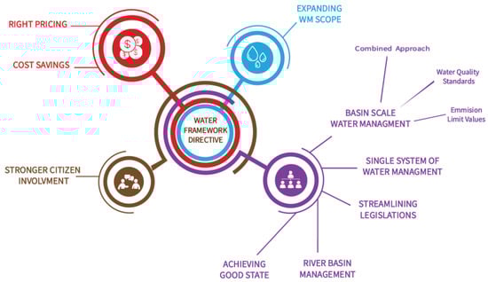 The Water Framework Directive (WFD)—the EU interpretation of IWCM, adopted in 2000—is a single system of river basin water management, also referred to as integrated river basin management (IRBM). The WFD institutionalises river basin management for water protection and encourages a cross-sector integrated approach and stakeholder participation [].