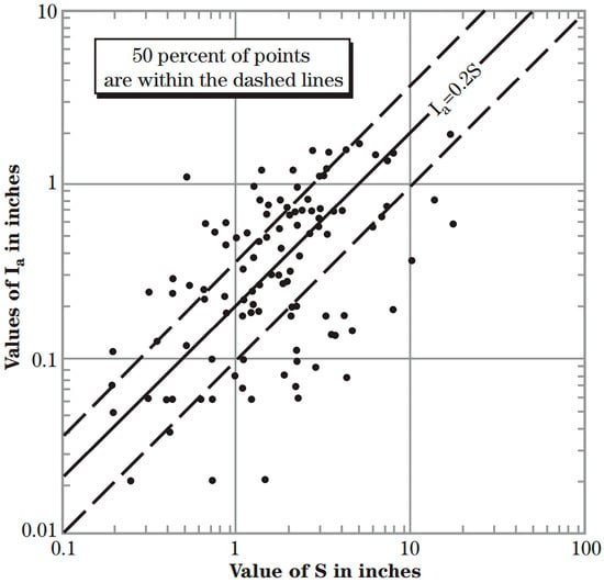 Based on previous studies, the linear correlation model of Ia = 0.2S proposed by the SCS was not statistically significant using the original data from 1954. Instead, the best linear models found were Ia = 0.112S [34] and Ia = 0.111S [35]. Thus, it is crucial to reassess the recalibration of the SCS-CN rainfall runoff model before using it, given the discreditation of the linear correlation of Ia = 0.2S.