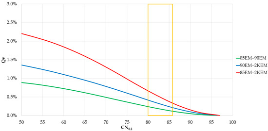 Since the corresponding 99% BCa upper limit of the CN0.2 = 88.32, the estimated runoff amount can also be obtained with a similar approach as shown above, resulting in a value of 179.58 mm. Comparing both the runoff amount estimated based on the collective representation (optimum CN0.2) and the 99% BCa upper limit of CN0.2, a runoff difference (Qv) of 50.10 mm is observed.