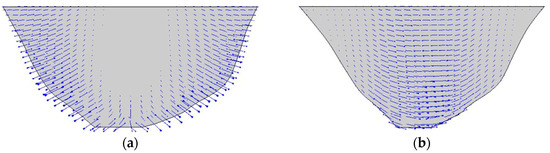 Vector diagram of compressive stress increment under arch dam expansion. (a) Upstream face. (b) Downstream surface.